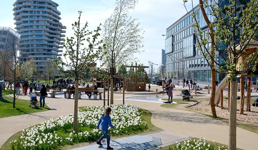 Mit dem Park „Grasbrookpark“ wurde 2013 eine öffentliche Freianlage fertiggestellt, die mit seinem reichhaltigen Angebot an Naherholungs- und Spielfläche den Charakter des Quartier prägt. Die Planung, Genehmigung, Ausschreibung und Realisierung dieses Parks steuerte PRISMA seit Anfang an.