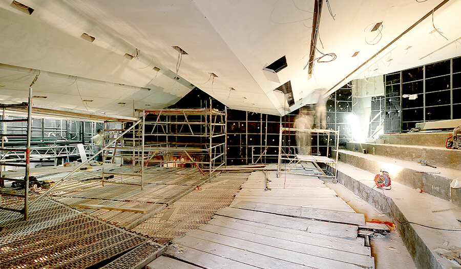 Bemerkenswert ist, dass Bühnenturm und Zuschauerraum erschütterungstechnisch vollständig entkoppelt als Haus-im-Haus Konstruktion erstellt worden sind, um keine störenden Erschütterungen aus zwei benachbarten U-Bahntunnel zu übertragen.