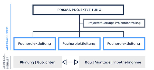 Aufgrund der Seltenheit oder Einmaligkeit der Projektaufgabe sind unsere Auftraggeber organisatorisch und personell oft nicht hinreichend auf diese Aufgabe eingerichtet. Bis auf übergeordnete Vertretungs- und Entscheidungsfunktionen können in solch einem Fall wesentliche Projektleitungsaufgaben der PRISMA-Projektleitung verantwortlich übertragen werden. In enger Zusammenarbeit mit Ihnen hat die PRISMA-Projektleitung ihr großes Projekt vom ersten Tag an im Griff.